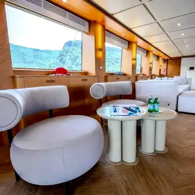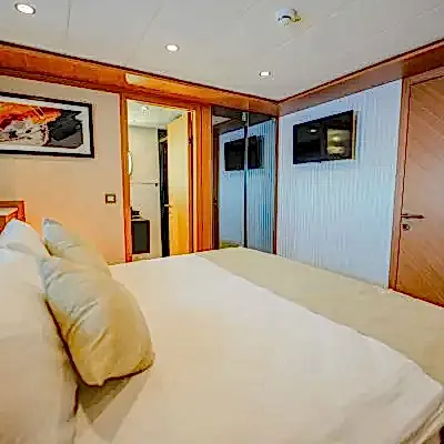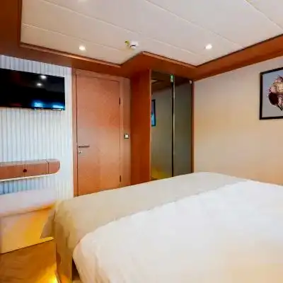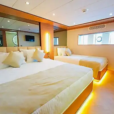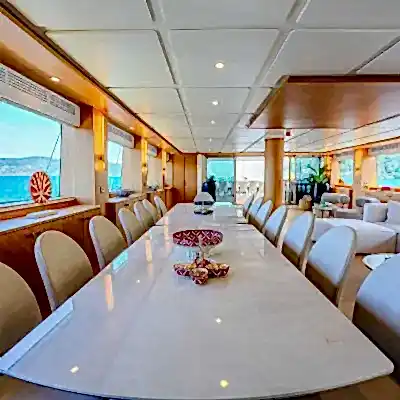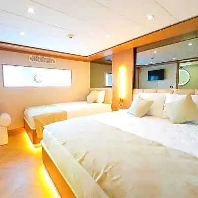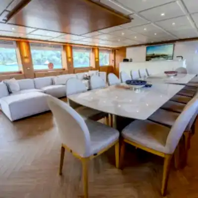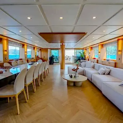 A stunning example of elegance and comfort in the motorsailer category, this unique yacht was newly launched in 2024. Stretching 50 meters in length, her features 10 luxurious cabins—8 doubles and 2 triples—welcoming up to 22 guests onboard. Designed for those who dream of the ultimate yacht holiday experience, every detail is crafted for comfort, from the modern en-suite bathrooms to the air-conditioning systems in each cabin. The spacious indoor and outdoor living areas ensure you feel completely at home while sailing the seas.