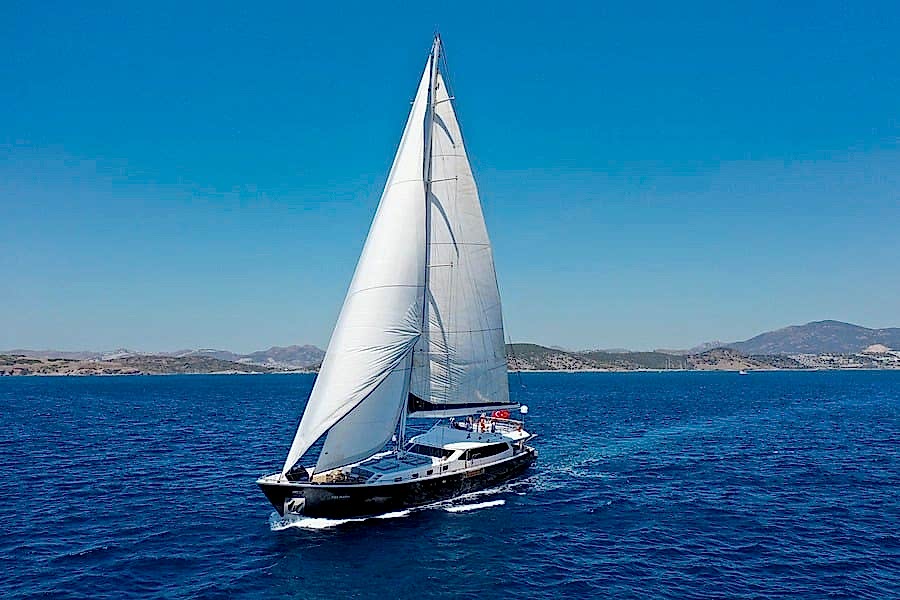 Additionally, unfurling its sails while underway provides guests with a unique sailing experience. Although built in 2013, the boat underwent a comprehensive refurbishment in 2023, essentially becoming a new vessel. Thus, “Gulmaria” promises her guests an unforgettable maritime holiday, combining modern comfort with traditional maritime experience.