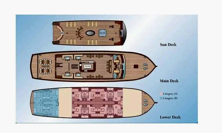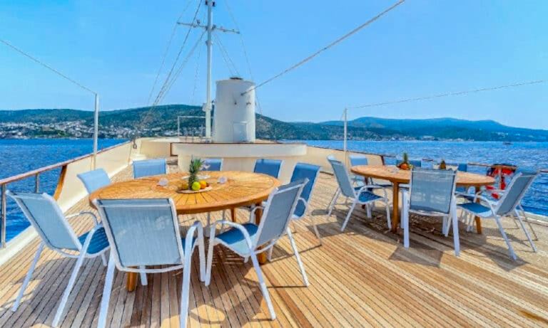 42 metre uzunluğundaki Elara 1 guleti, 12 kabin ve 24 kişiye kadar konaklama kapasitesi sunmakta. Her kabinde yatak, duş, WC, duşa kabin, klima, makyaj masası, küçük oturma alanı, gardırop gibi standartları var. Salon alanında 24 kişiye göre yemek masaları mevcut. Üst güverte alanında güneş yatakları ve farklı dizaynlarda oturma alanları bulunurken, güvertede jakuzi keyfi ayrıcalıktır. Üst güverte alanı parti eğlenceleri için de ideal konsept oluşturmakta.