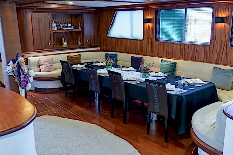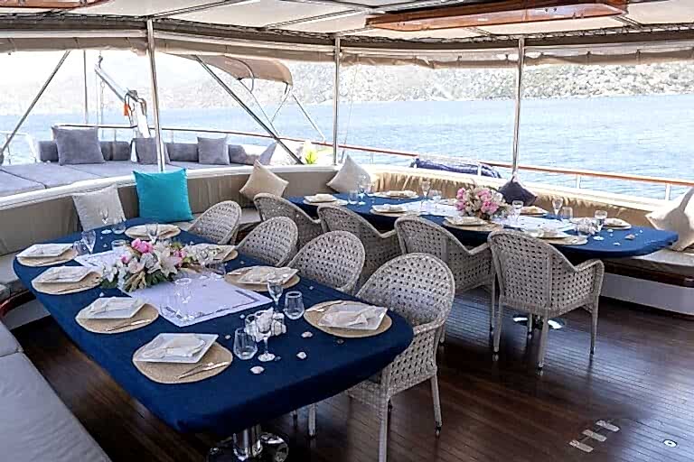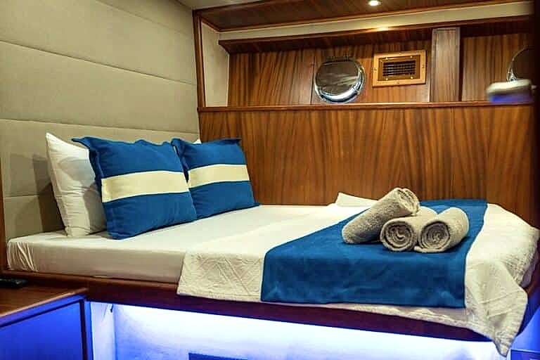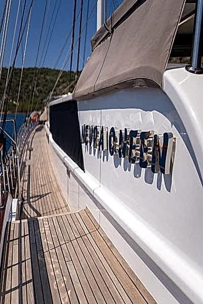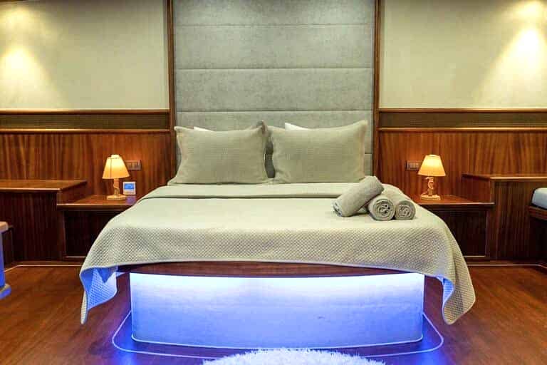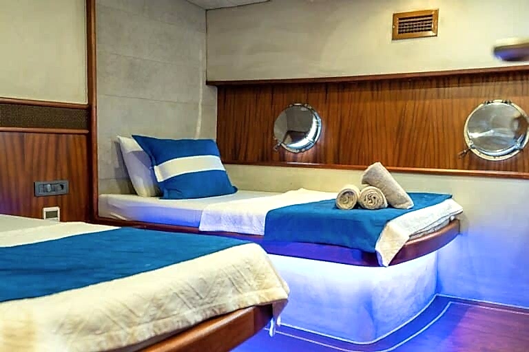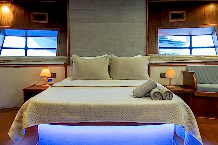 “Nevra Queen” Türkiye’deki nadir 10 kabinli tekneler arasında yer almaktadır. 2018 yılında inşa edilen bu harika ve modern tasarımlı 40 metrelik Türk guleti, 20 misafir için mavi yolculuk tatili sunmaktadır. Nevra Queen, 2 master kabini, 6 double kabini ve 2 twin kabini ile çeşitli konforlar sunmaktadır. Kabinler geniş, klimalıdır ve en iyi düşünülmüş detaylara sahiptir. Neşeli ve enerjik 7 mürettebat üyesi, tur boyunca memnuniyetiniz için sıkı bir şekilde çalışmaktadır. Çok çeşitli su sporlarına sahip Nevra Queen’de eğlencenin tadını sonuna kadar çıkarabilirsiniz.