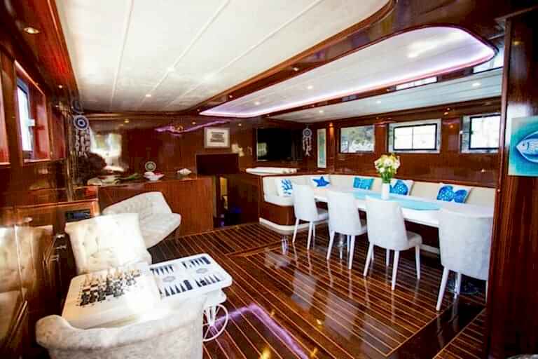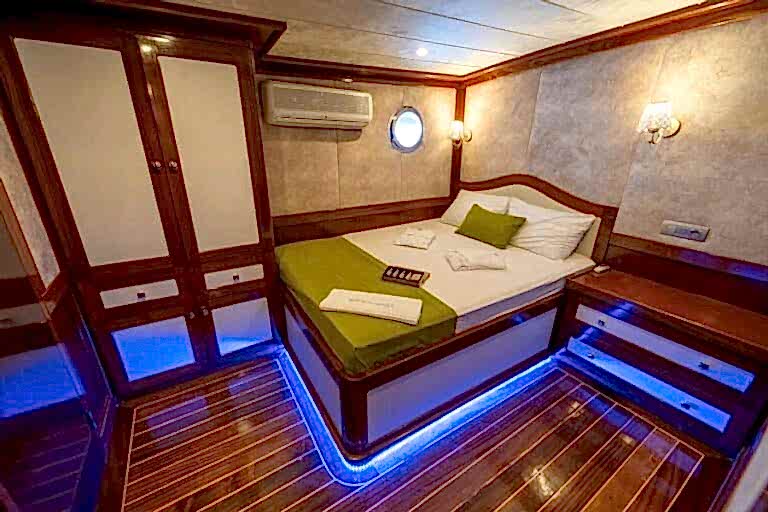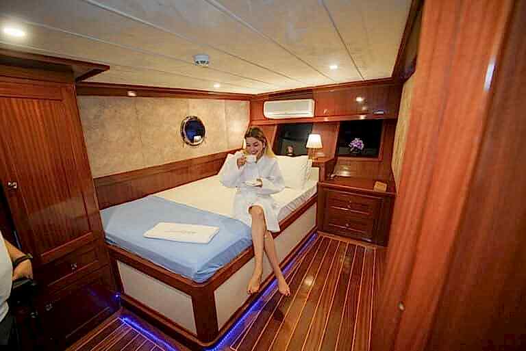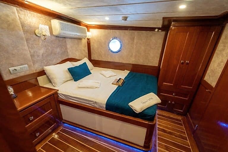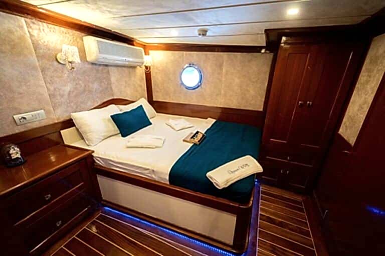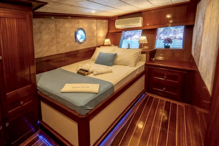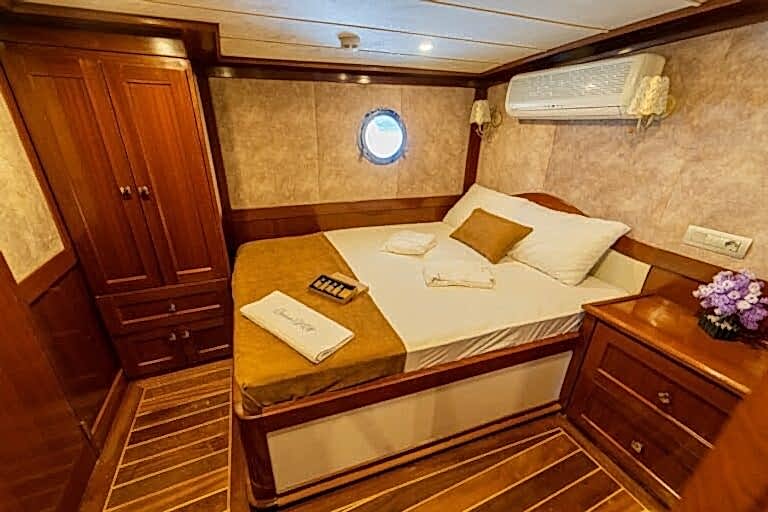 2004 yılında inşa edilen ve 2021 yılında yenilenen Queen of RTT, 18 misafire kadar tam konforla konaklama imkanı sağlayan 8 adet güzel döşenmiş kabine sahiptir: 6 Çift Kişilik Kabin ve 2 Üçlü Kabin. Her kabinde klima, wc – banyo, saç kurutma makinesi bulunur. Yatın geniş iç ve dış alanları, Türk kıyı şeridinin nefes kesen manzaralarını seyrederken yemeklerin tadını çıkarmak, dinlenmek veya aileniz ve arkadaşlarınızla sosyalleşmek için mükemmeldir.