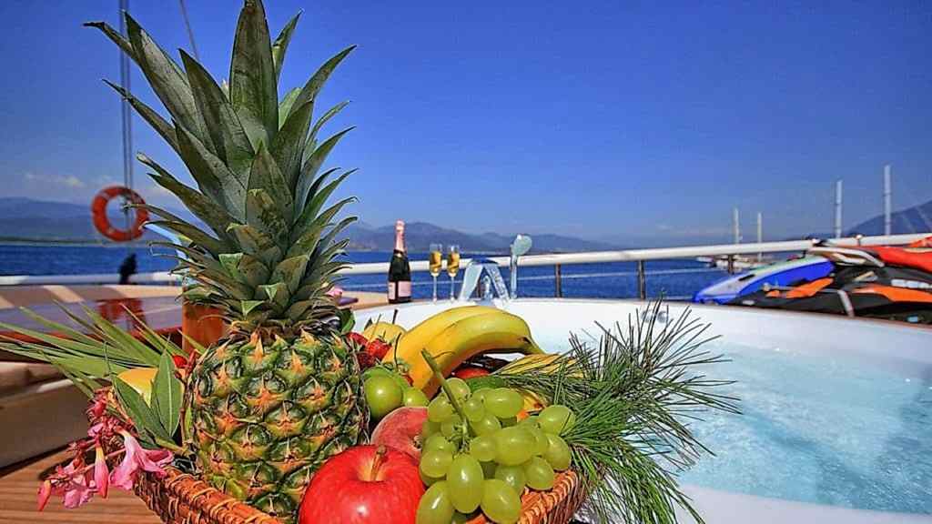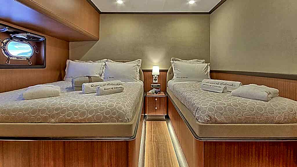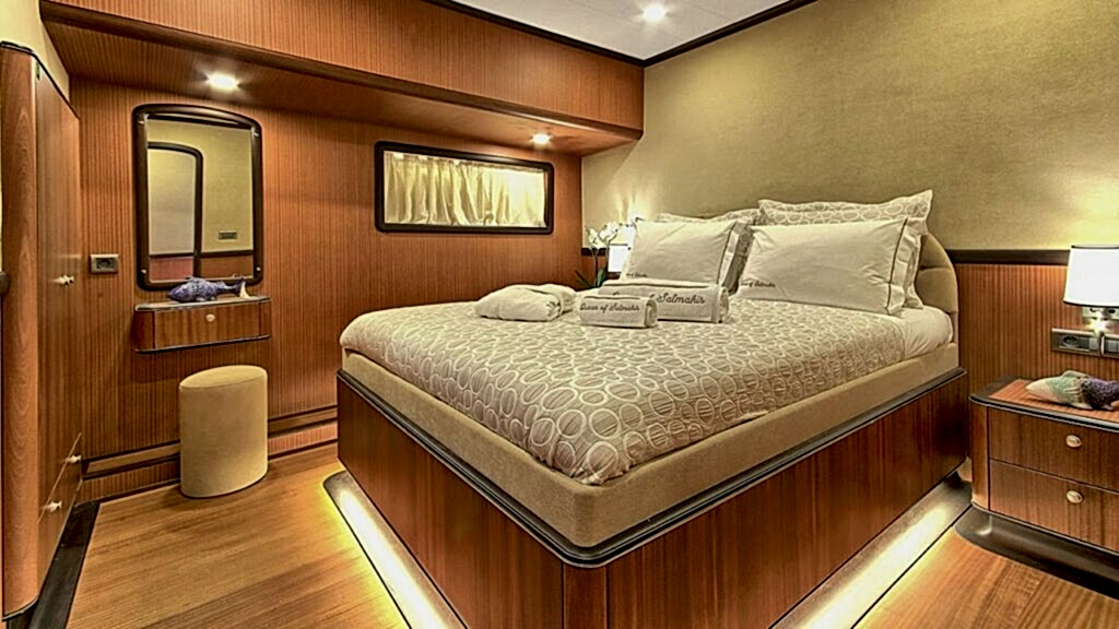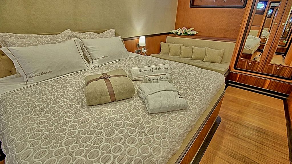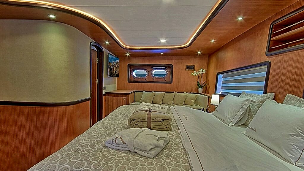 “Queen of Salmakis guleti”, 2019 yılında yapılmış, yelkenleri tam olan ahşap bir teknede modern ve lüks bir seyir deneyimi sunuyor. Queen of Salmakis, yarı ahşap, yarı sybaria süet kombinasyonunun benzersiz tasarımına sahip şık ve konforlu odalarıyla öne çıkıyor. Tüm banyolar aynı geniş boyutlarda tasarlanmıştır. Queen of Salmakis guletinde 8 kabin bulunmaktadır ve 16 kişiye kadar konaklama imkanı sunmaktadır.